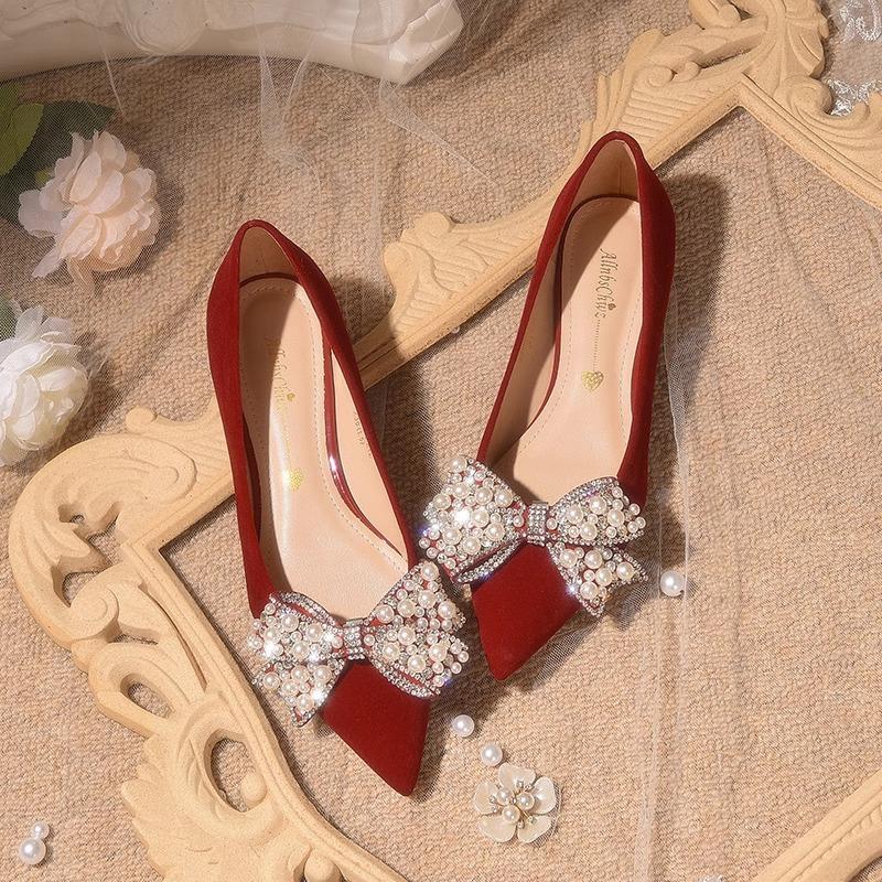 Красные свадебные туфли женские на плоской подошве 2025 четыре сезона новые китайские сценические костюмы обувь невесты плоский каблук беременные женщины не устают
