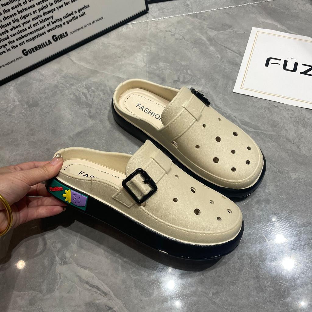 2025 летние новые персонализированные туфли с дырочками, пряжка, ремень, платформа, модная женская сумка, тапочки, верхняя одежда, праздничная пляжная обувь