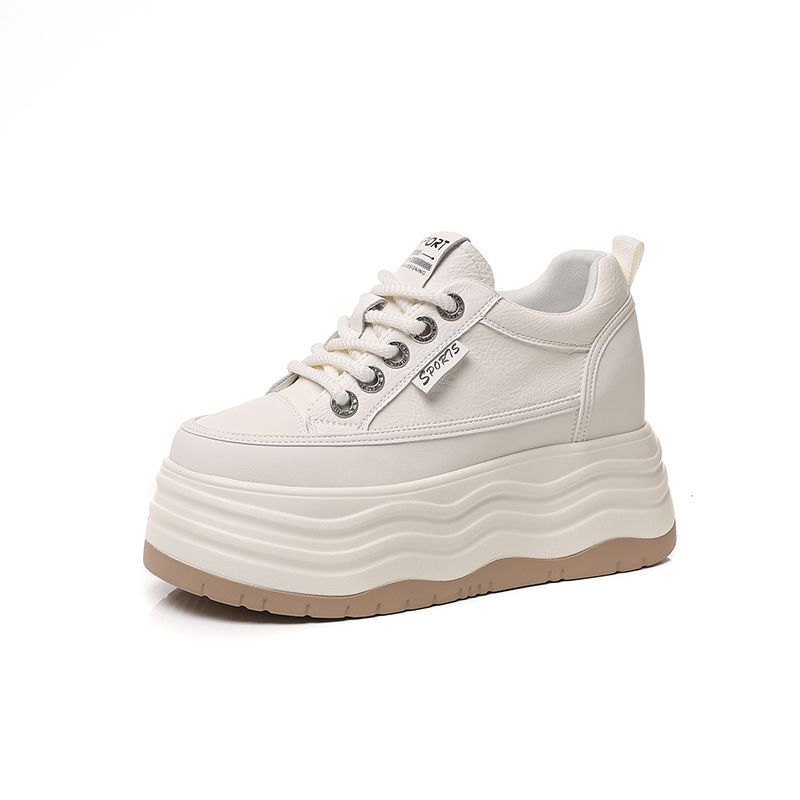 Кожаная внутренняя часть увеличивает рост белые туфли женские 2024 осень новые толстые подошвы маленькие кексы мягкая подошва повседневные туфли для доски