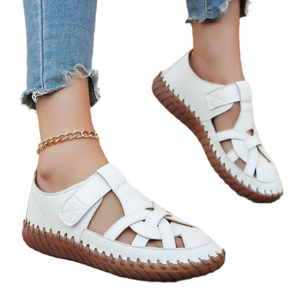 Летние новые сандалии из мягкой кожи с подошвой из говяжьих сухожилий, с полым мешком, сандалии с отверстием для головы, импортная торговля, большой размер, классные одинарные туфли