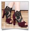 2025 лето новые европейские и американские босоножки с толстым каблуком и кружевом «рыбий рот» женские от производителя