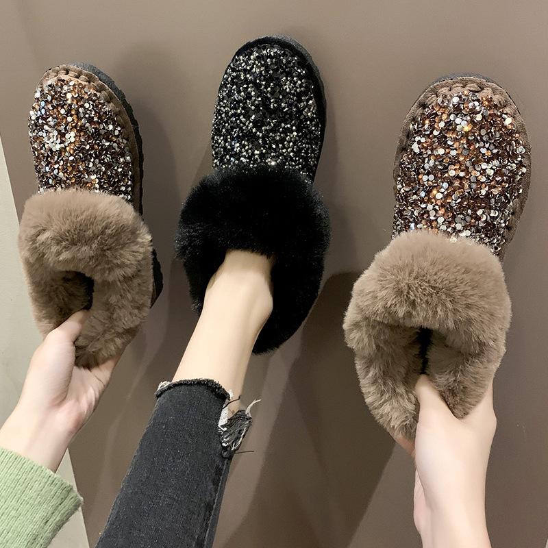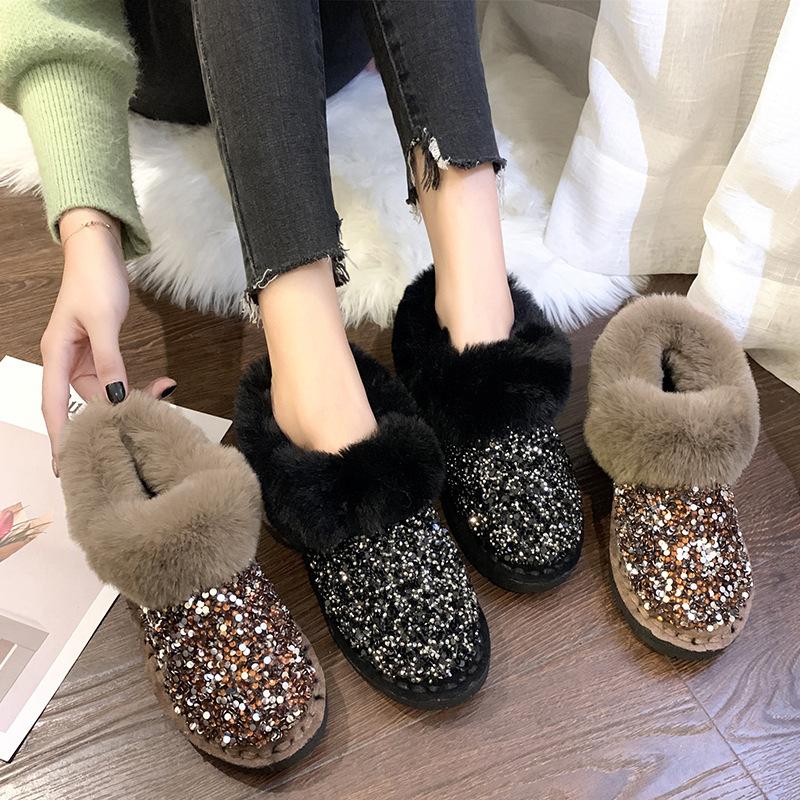 2025 осень и зима новые корейская версия бархатные утолщенные расшитые пайетками зимние сапоги на плоской подошве студенческие короткие хлопковые туфли женские производитель