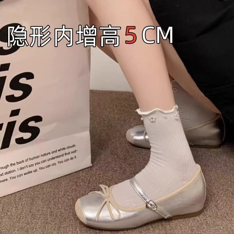 5 см увеличение внутренней высоты французский нежный ветер 2025 новые квадратные туфли Мэри Джейн с серебряным бантом женские