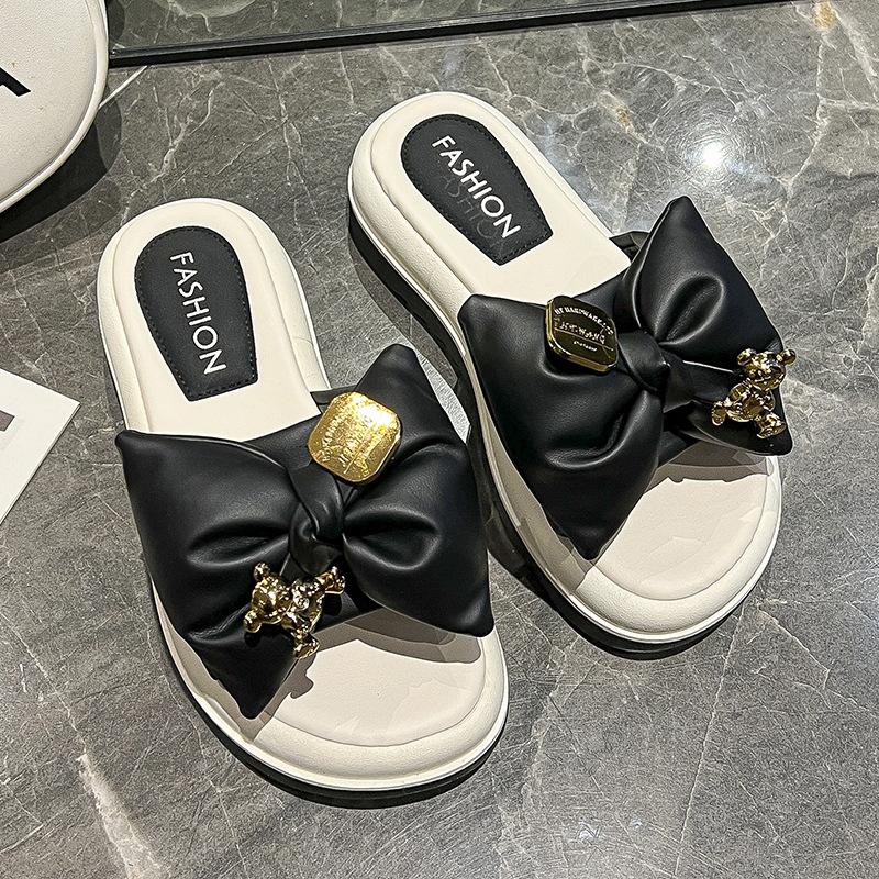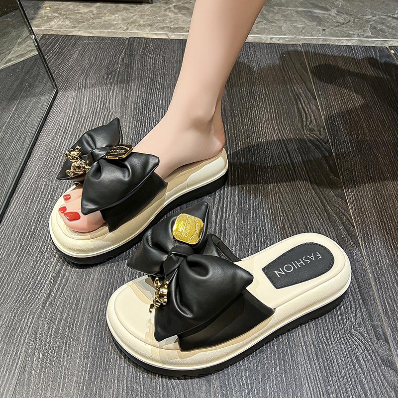 Модные тапочки с толстой подошвой, женская летняя одежда, бант, фея с юбкой, офис, наступи на дерьмо, ощущение, классные тапочки для пляжа