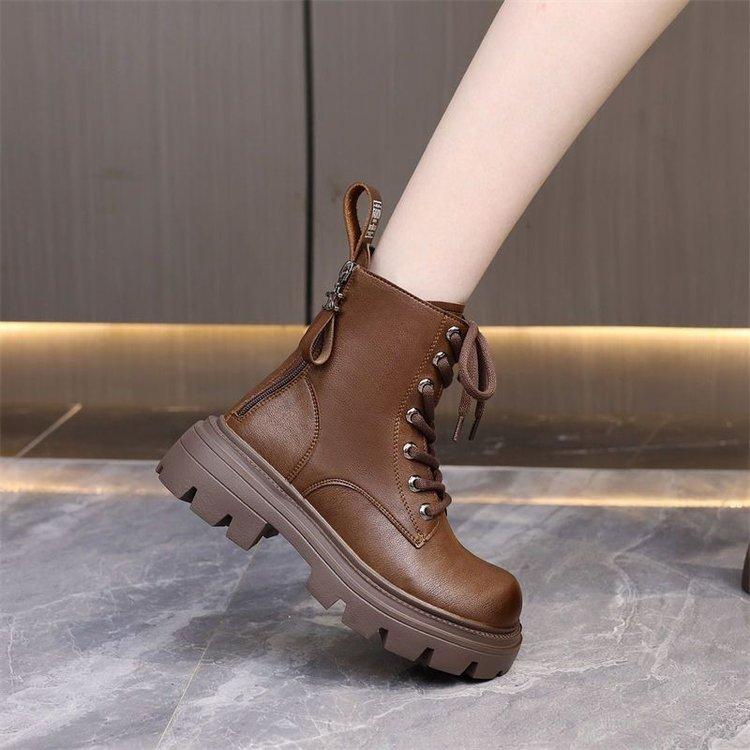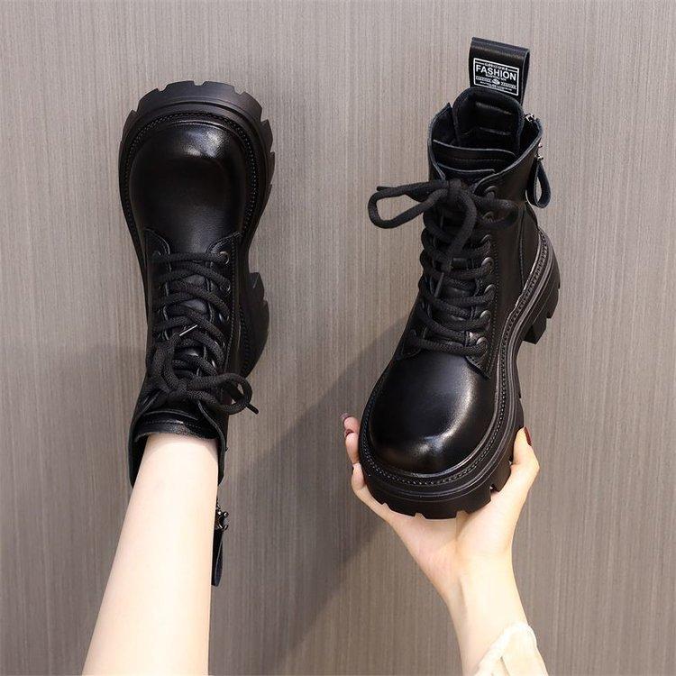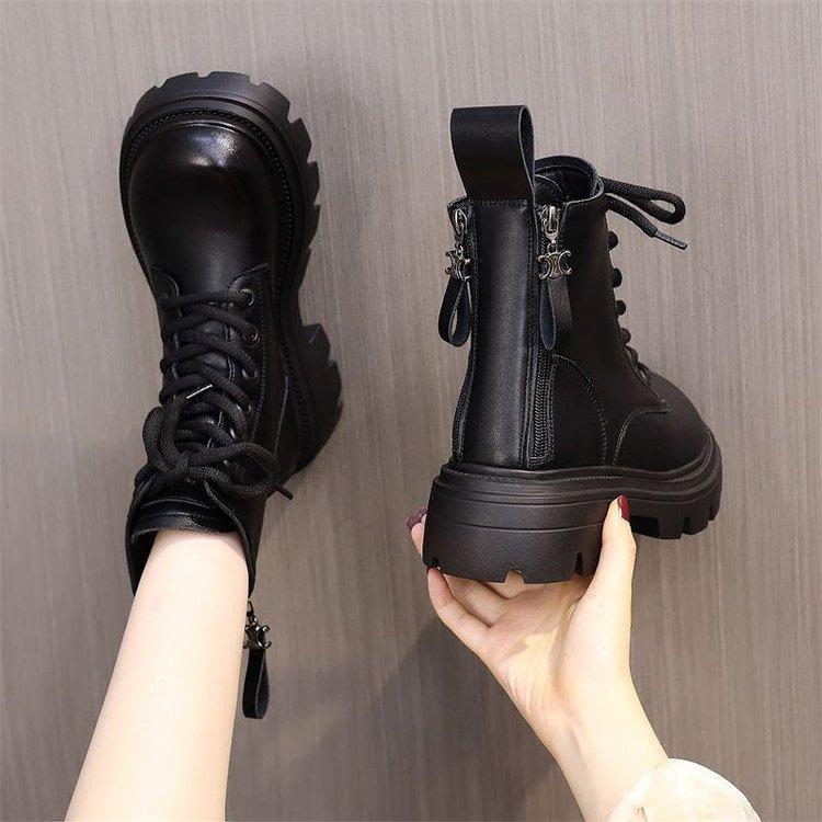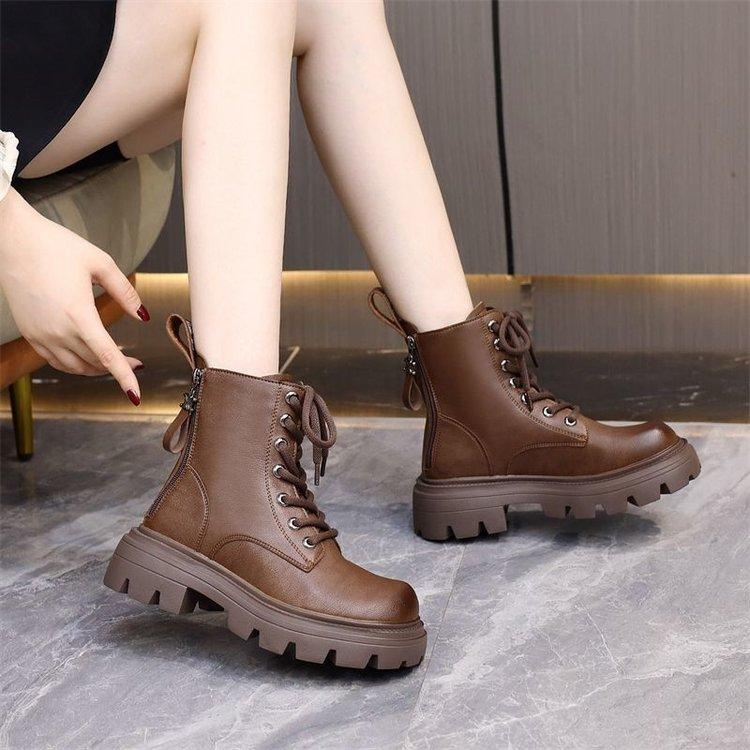 Ботинки Мартина на толстой подошве и толстом каблуке женские осенне-зимние одинарные ботинки 2024 популярные короткие ботинки в британском стиле высокие теплые бархатные хлопковые ботинки