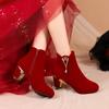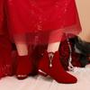 Свадебные красные туфли зимние Xiuhe толстый каблук свадебное платье китайские свадебные туфли женские сапоги свадебные туфли на высоком каблуке 2024 новый красный