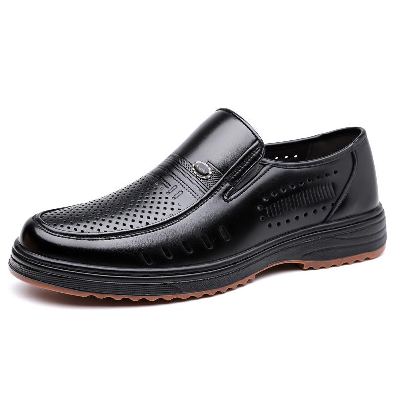 Мужские кожаные сандалии, летние, новые, кожаные, деловые, повседневные, мужские туфли, полые, дышащие, для мужчин среднего и пожилого возраста, с дырками