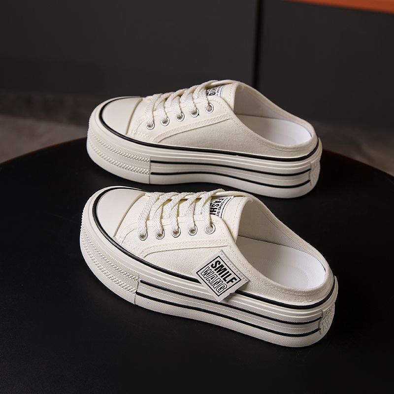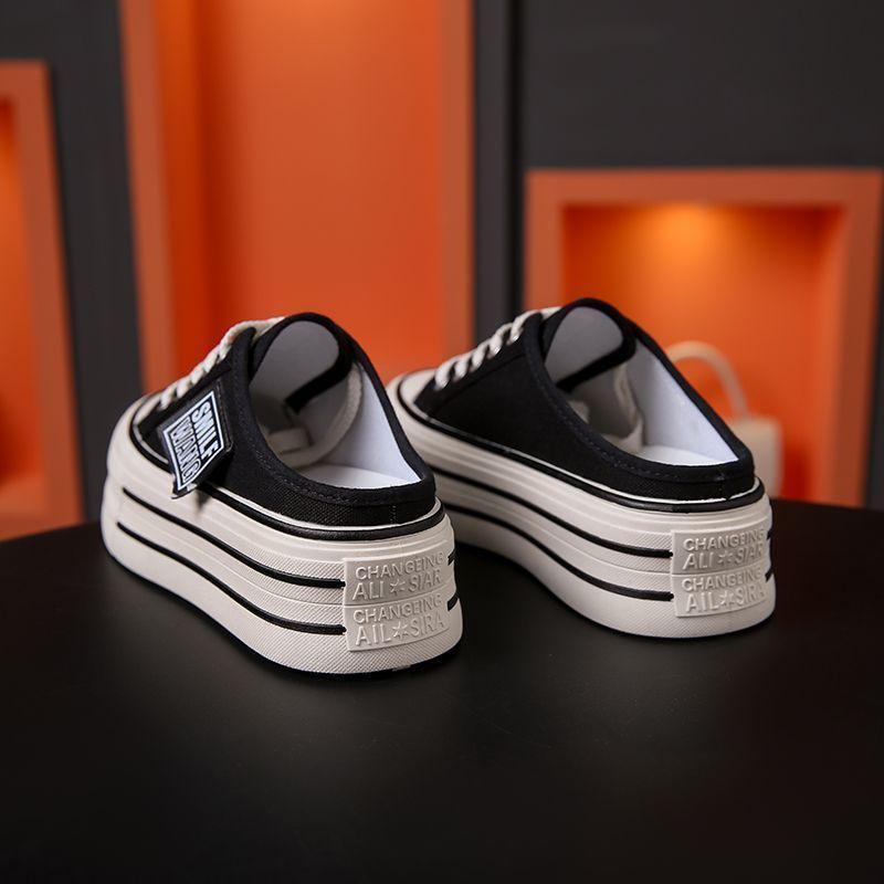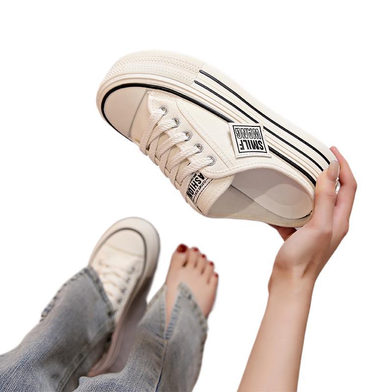 Холщовые полутапочки женская летняя одежда 2025 года, новинка, интернет-знаменитость, ощущение толстой подошвы, усиленной, без каблука, ленивый