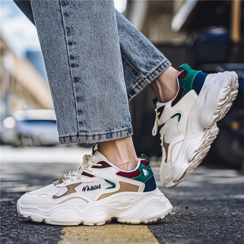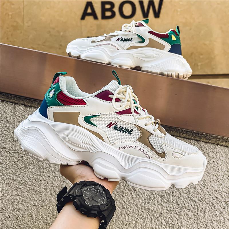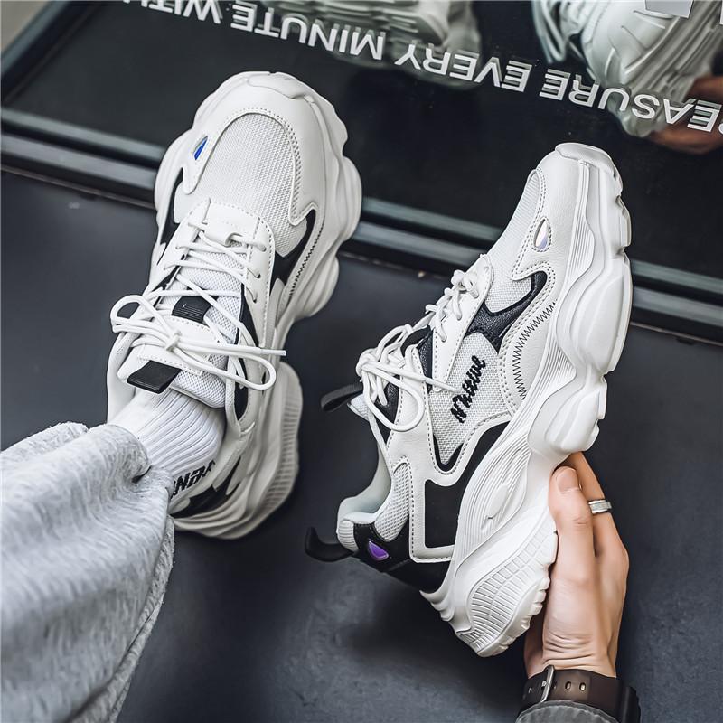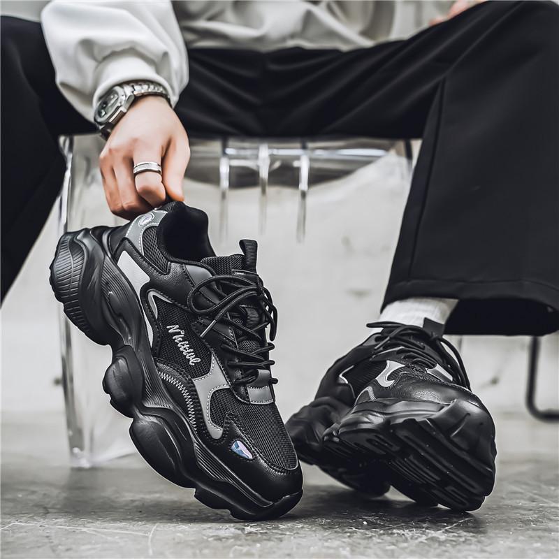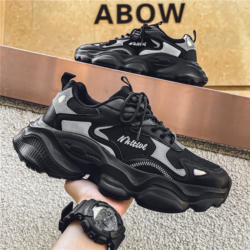 2024 зимняя новая мужская обувь сетка студенческая спортивная беговая толстая подошва усиливающая досуг популярная обувь для пап в гонконгском стиле
