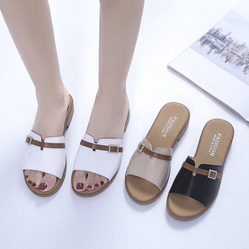 2025 летняя новая корейская версия модной женской обуви повседневные односимвольные пряжки на ремне классные тапочки с круглой головкой и квадратной пряжкой