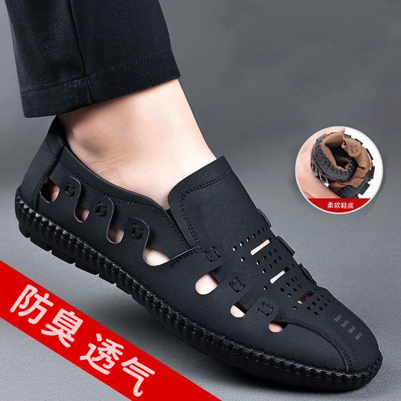 Летние мужские повседневные сандалии удобные мягкие дышащие туфли с отверстиями модные трендовые плоские туфли с одной педалью пляжная обувь
