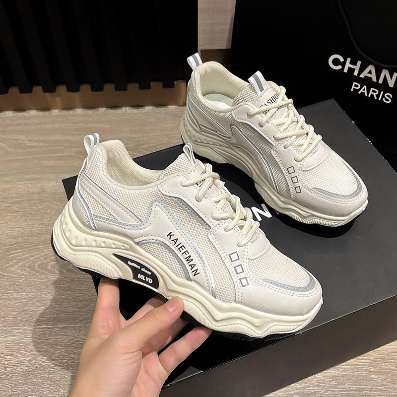Женские туфли на платформе, папины туфли, высокие, молодежные, универсальные, маленькие белые туфли, сетчатые, дышащие и удобные женские туфли