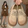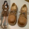 Ins design ретро полированные кожаные туфли женские 2024 новые весенние универсальные туфли на платформе со шнуровкой британские одинарные туфли