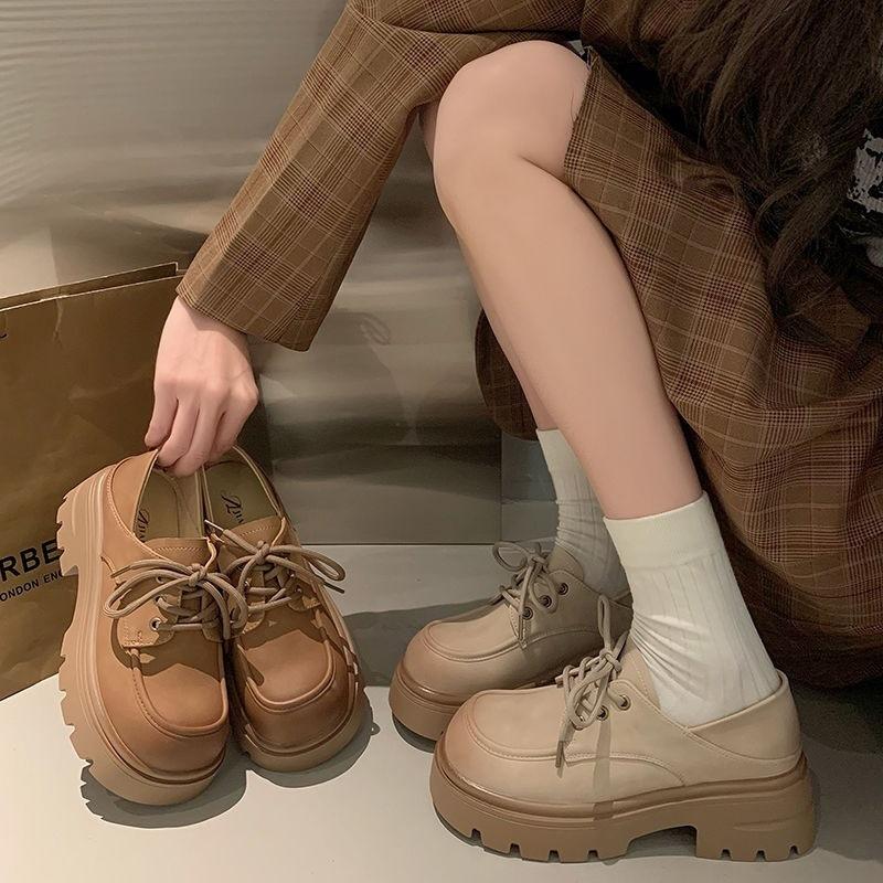 Ins design ретро полированные кожаные туфли женские 2024 новые весенние универсальные туфли на платформе со шнуровкой британские одинарные туфли — купить товар онлайн с бесплатной доставкой по всему миру!