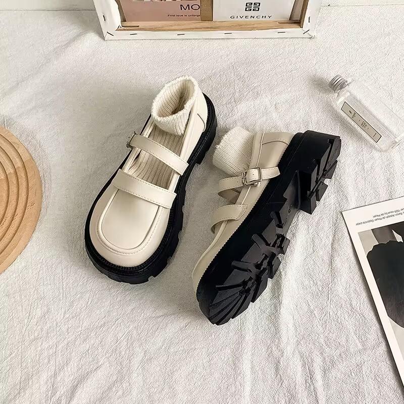 Туфли Мэри Джейн из натуральной кожи, летние, женские, универсальные, белые, с круглым носком, японские, с юбкой, ретро, французские, одинарные