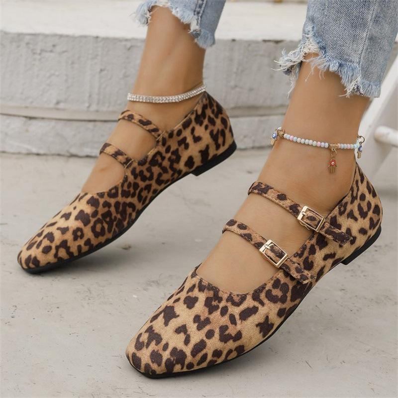 Женская обувь 2024 года, брендовые женские туфли на плоской подошве с пряжкой и ремешком, модные повседневные туфли на плоской подошве с леопардовым принтом, горячая распродажа, туфли на плоской подошве с квадратным носком и низким каблуком