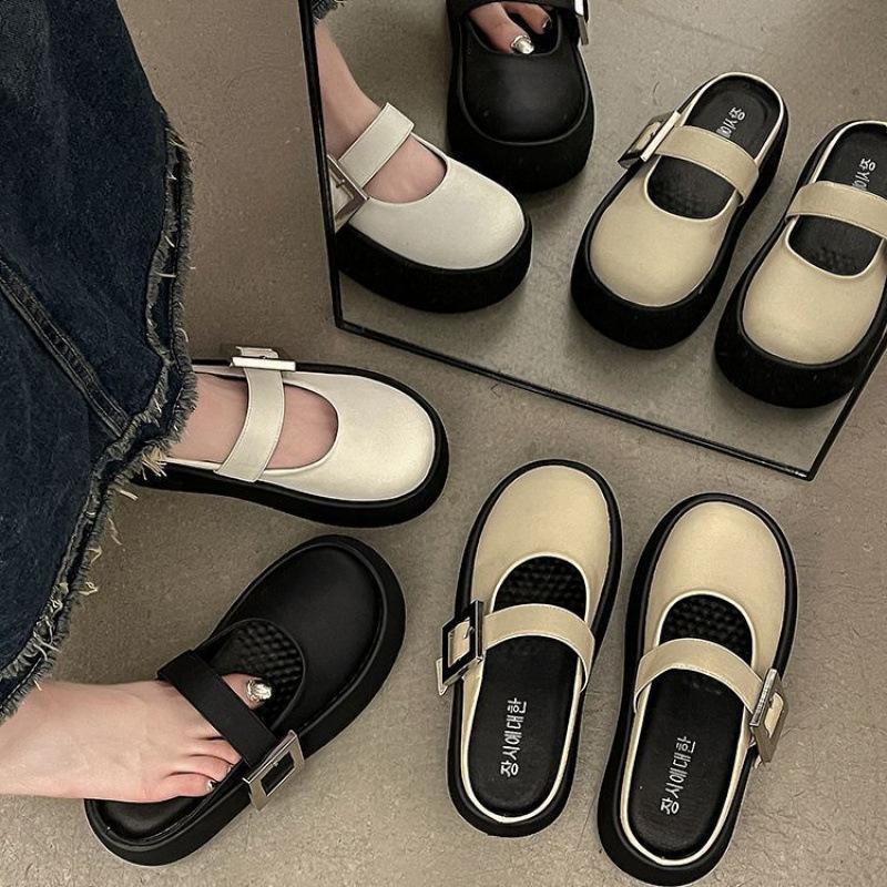 Нишевый дизайн, полутапочки с сумкой на голову, женская летняя одежда 2025 года, новые дышащие сандалии с пряжкой на толстой подошве