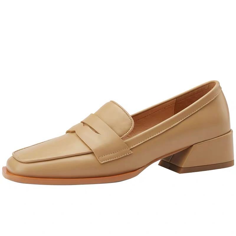 2025 весна и осень новые мягкие кожаные модные туфли-одиночки британский стиль квадратные мокасины женские ретро маленькие кожаные туфли женские ленивые туфли