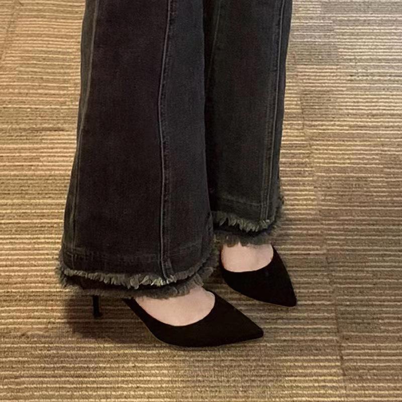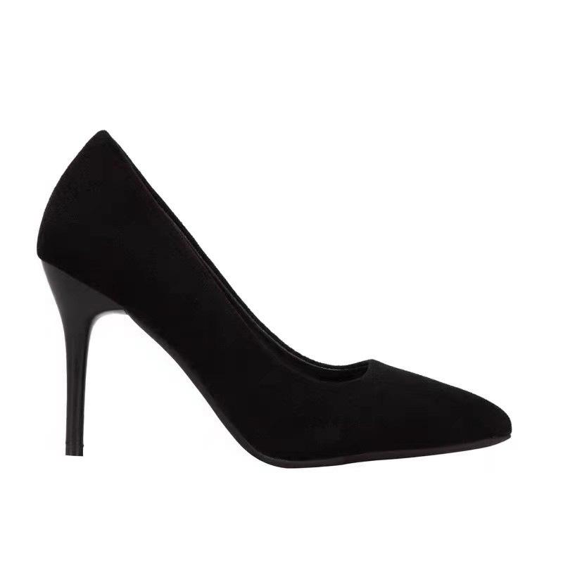 2025 новые весенние замшевые черные туфли на высоком каблуке женские туфли-шпильки для офиса, рабочие туфли большого размера