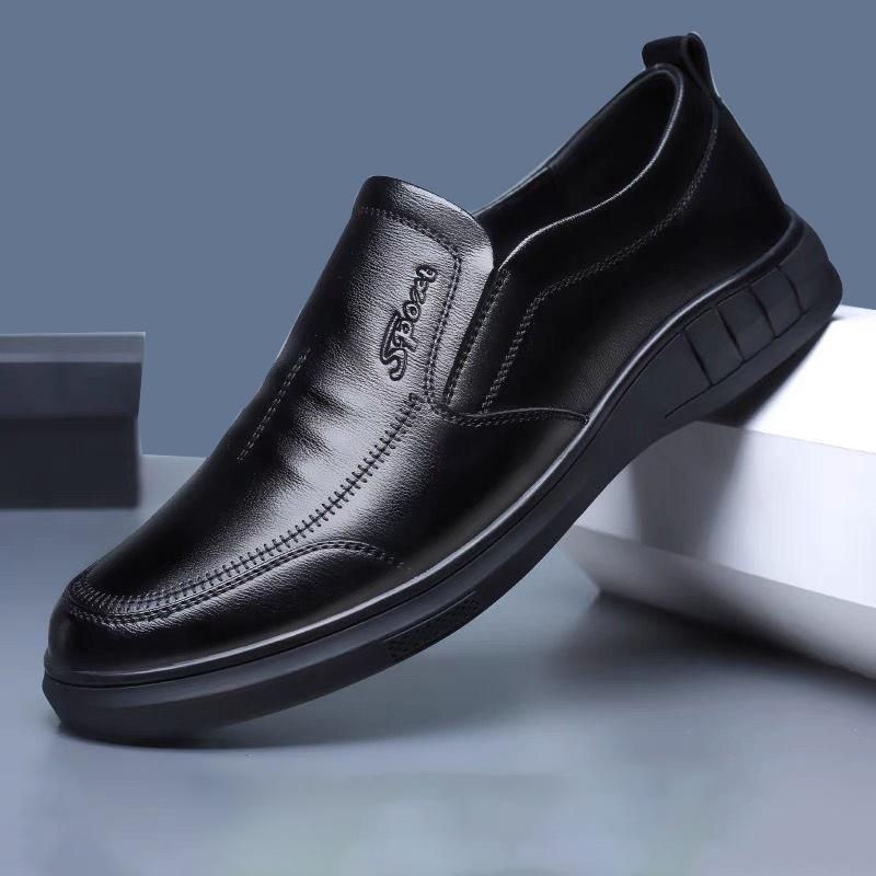Кожаная обувь для мужчин среднего и пожилого возраста, повседневная обувь в британском стиле на все времена года с мягкой подошвой и мягкими боковинами, повседневная мужская кожаная обувь для бизнеса