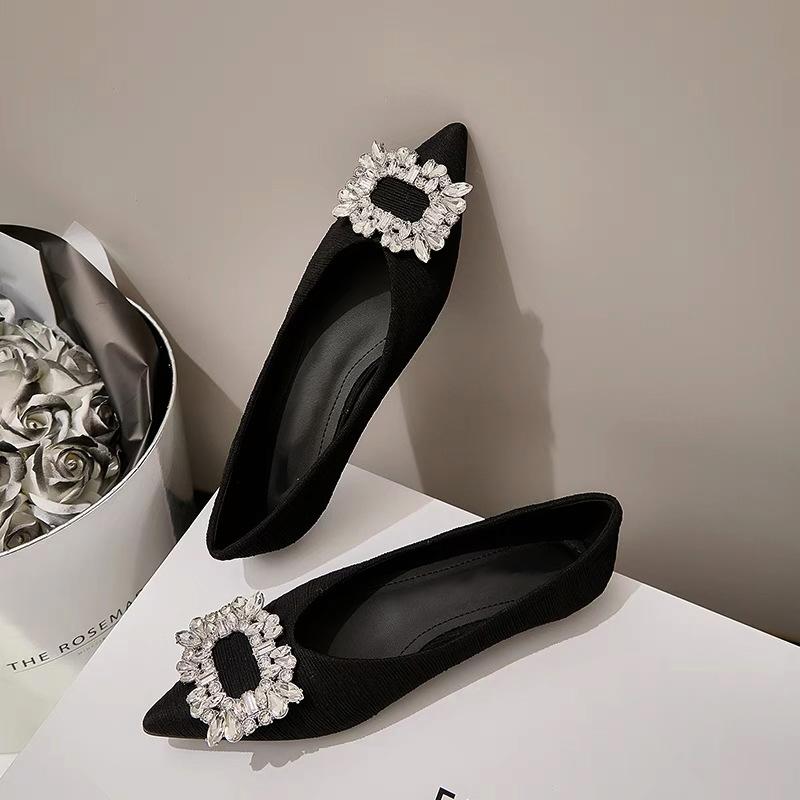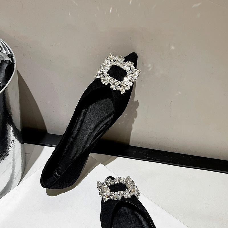 Туфли-лодочки со стразами женские с мелким вырезом феи балетки 2024 новые остроносые на мягкой подошве туфли для подружки невесты темпераментные удобные женские туфли
