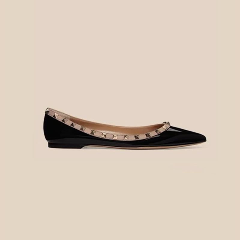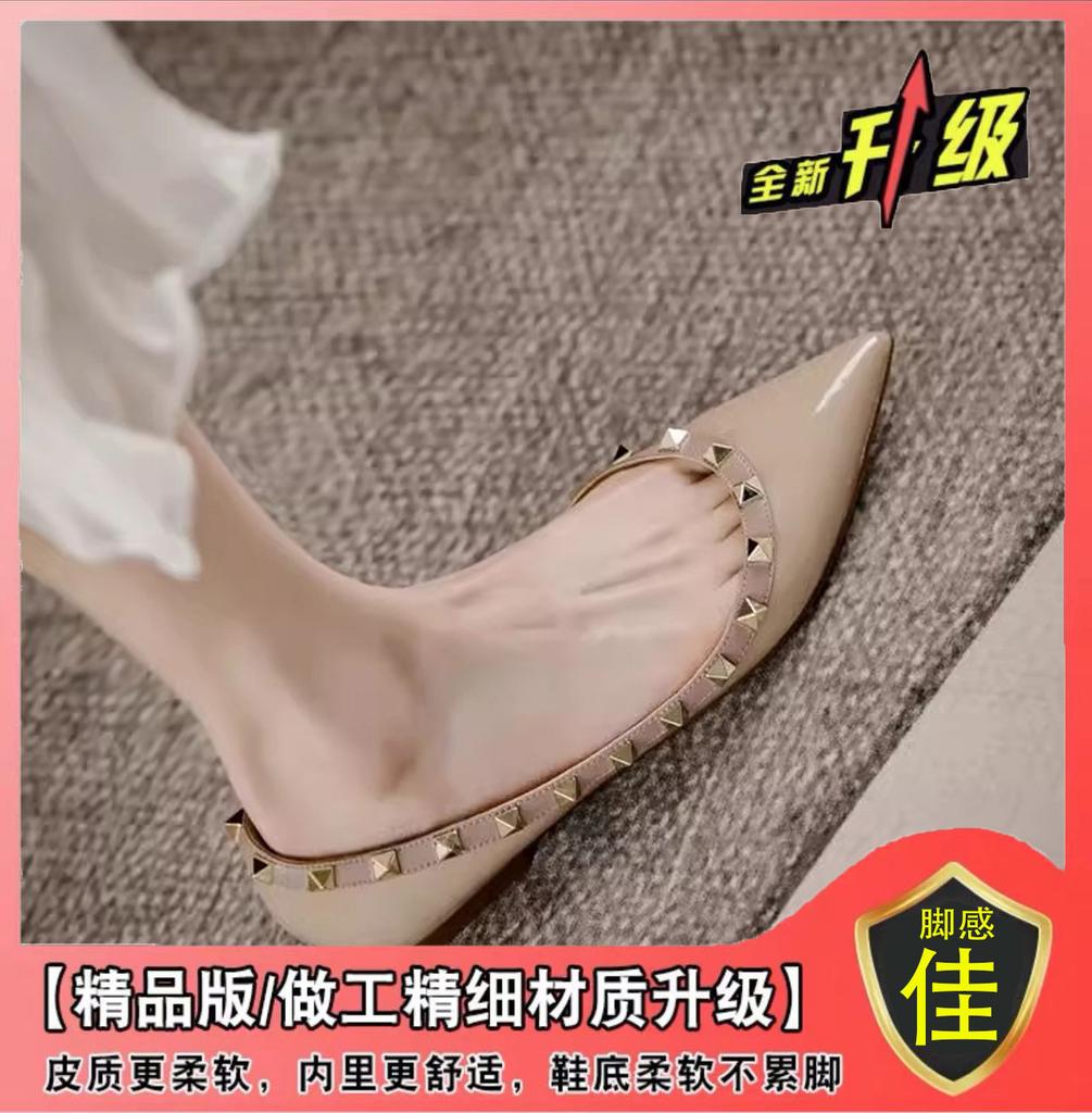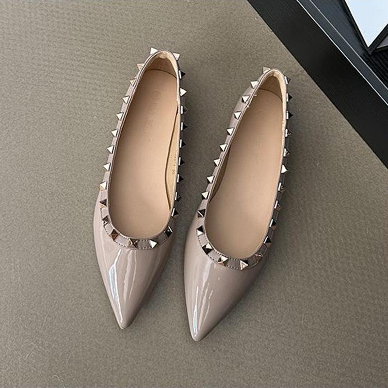 Французский темперамент Xiaoxiang вечерний бриз остроносые одинарные туфли женские с неглубоким носком 2024 новые весенние и осенние туфли на плоской подошве с заклепками женские туфли