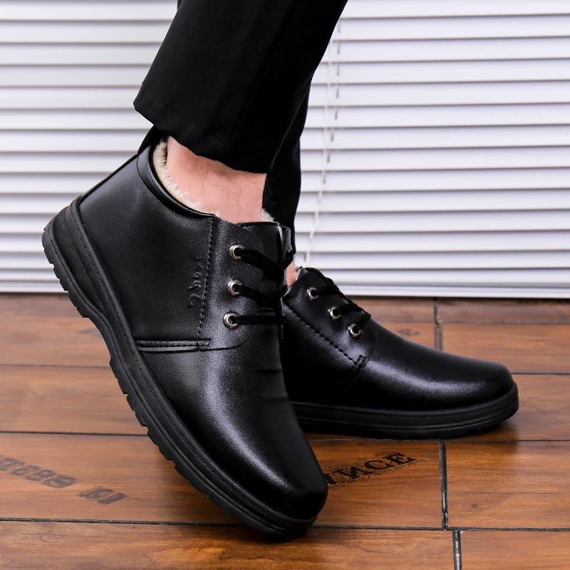 2024 зимние теплые бархатные нескользящие мужские повседневные высокие хлопковые туфли для пожилых людей хлопковая обувь мужская кожаная мужская хлопковая обувь