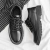 Летние черные повседневные кожаные туфли мужские британские деловые туфли на толстой подошве с круглым носком костюм с большой головой туфли Martin tooling
