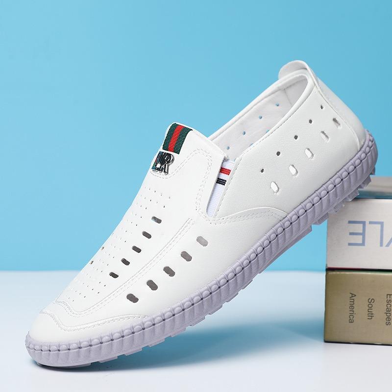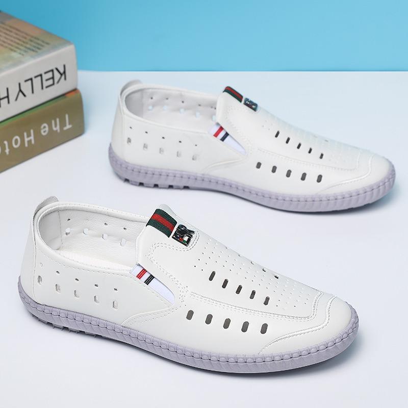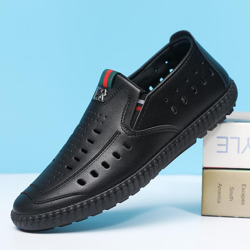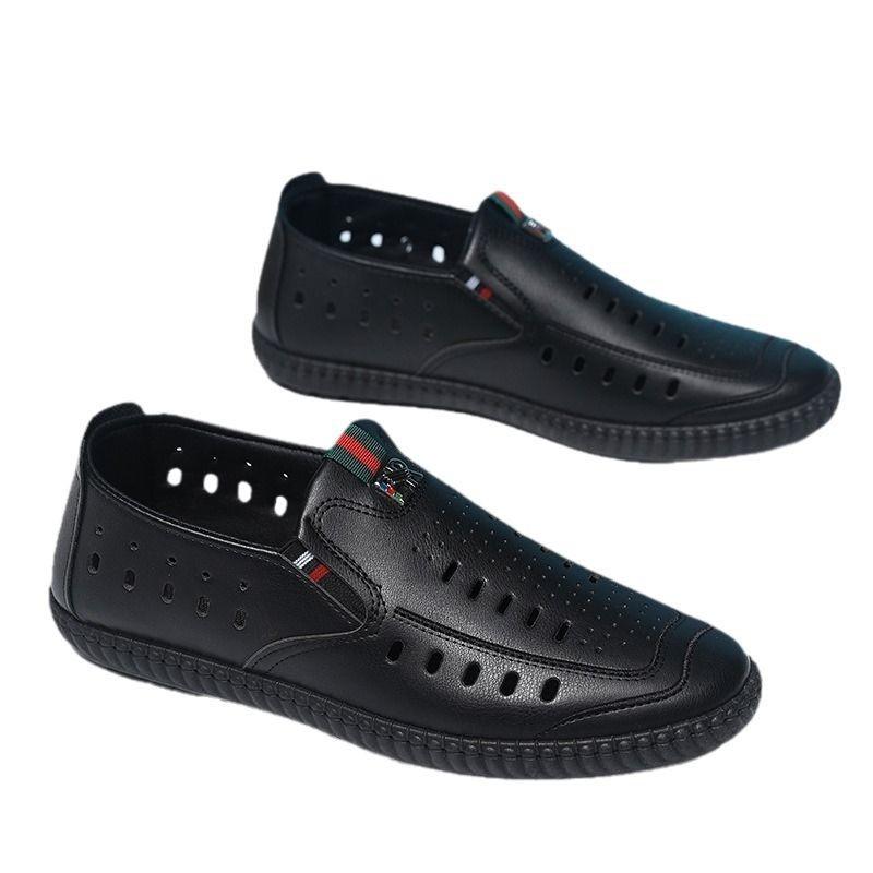 Кожаные туфли мужские летние 2024 года новые мужские сандалии с мягкой подошвой полые дышащие классные кожаные туфли повседневная обувь папины туфли