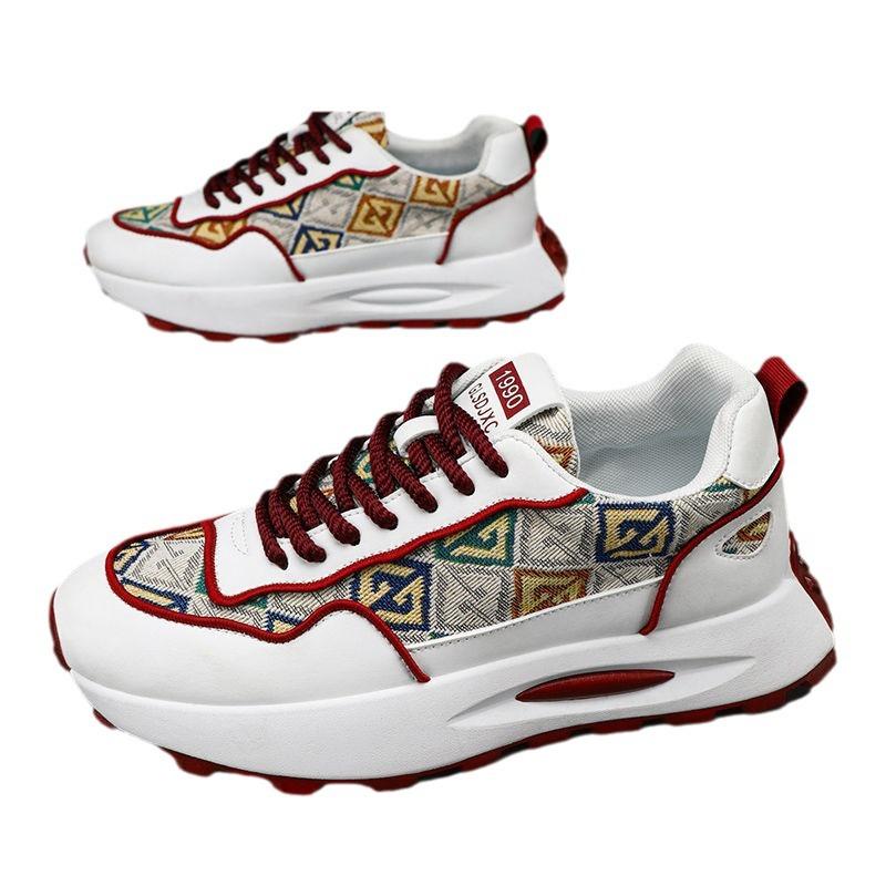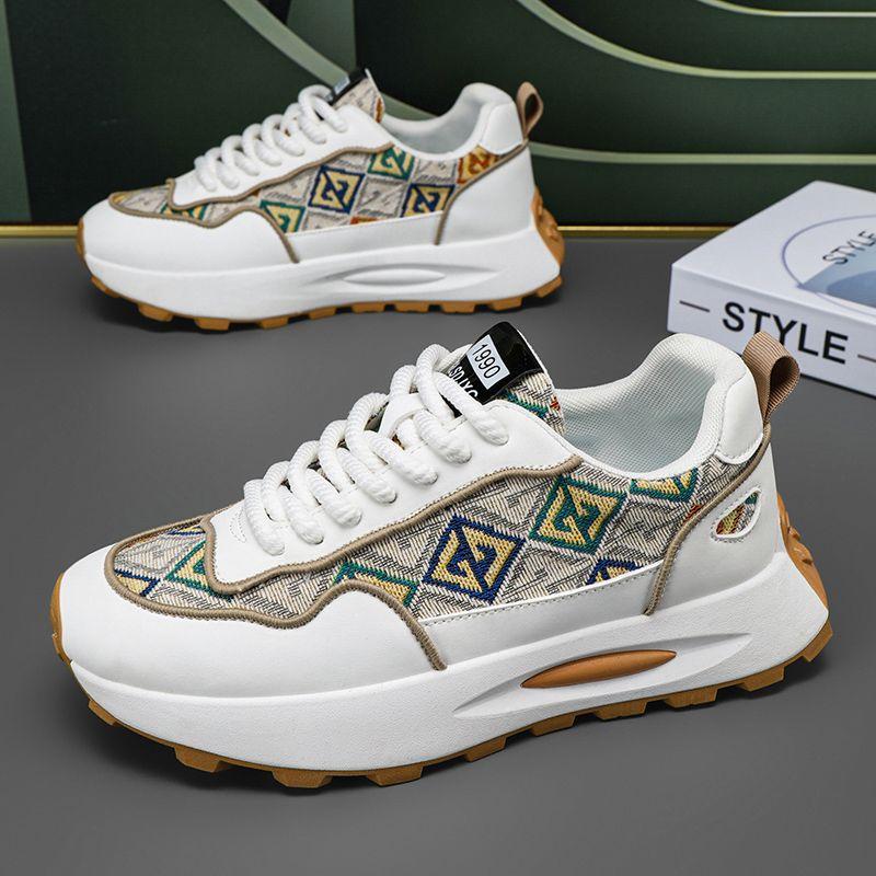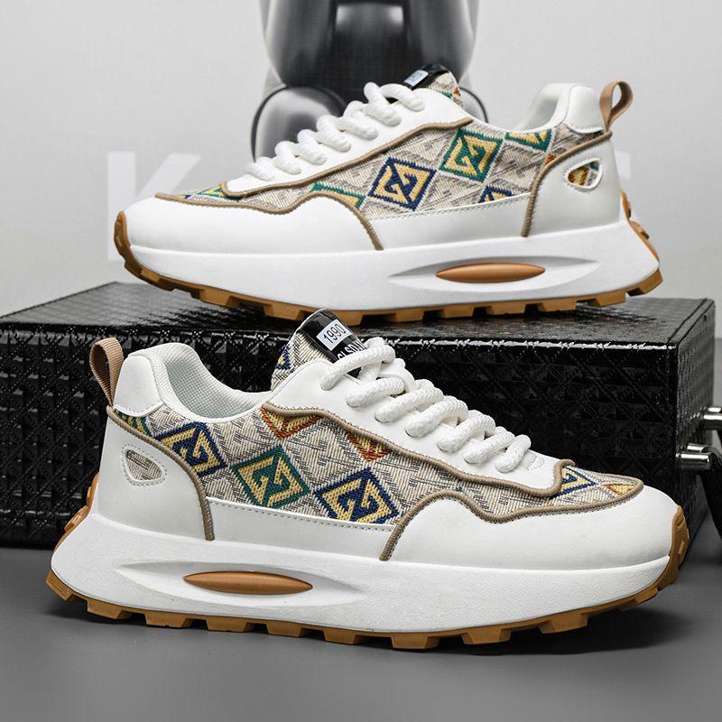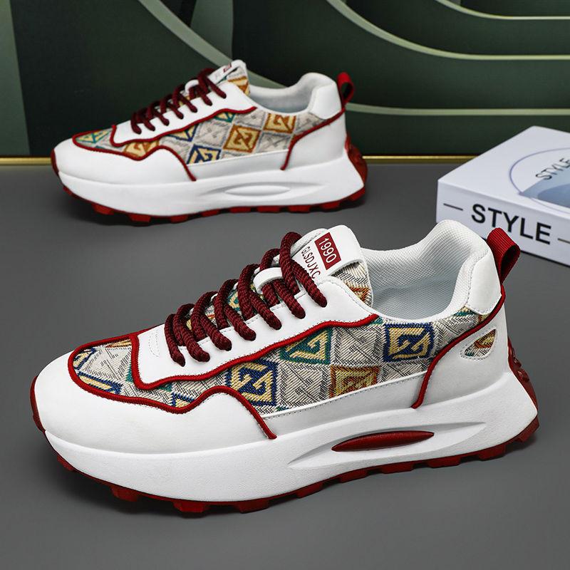 Мужская обувь 2025 года, новые летние дышащие туфли на высокой платформе для пап, молодежные повседневные кроссовки для бега с принтом, спортивные модные туфли