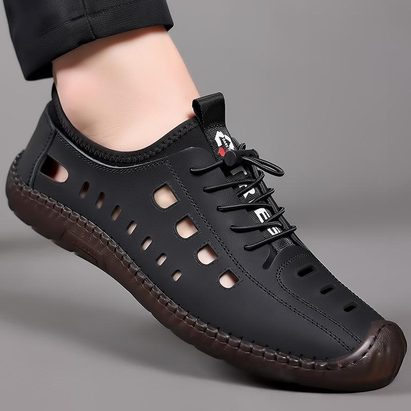 2025 летняя новая мужская повседневная обувь сшитая вручную, мужская мягкая подошва, мягкая поверхность, полые дышащие сандалии с отверстиями 8890