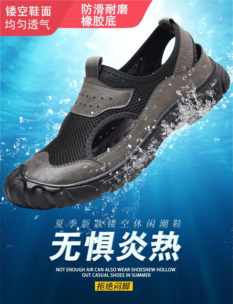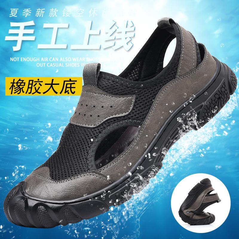 2025 летняя новая мужская повседневная обувь мужская ручная работа онлайн полые дышащие кожаные сандалии кожаные сетчатые туфли 0938