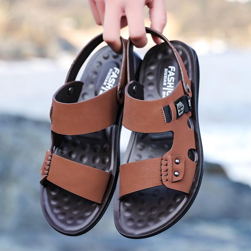 2025 летняя новая мужская обувь для езды на мотоцикле, две кожаные сандалии, повседневная модная пляжная обувь, сандалии, тапочки для мужчин 2305 — купить товар онлайн с бесплатной доставкой по всему миру!