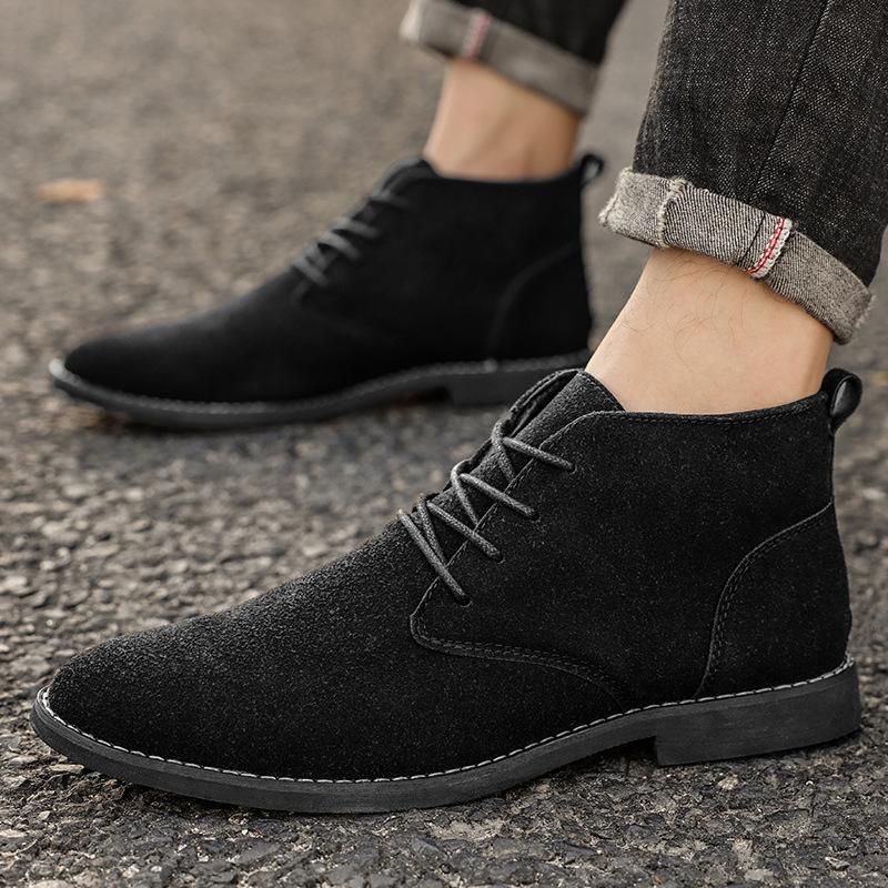 Ботинки Martin Мужские короткие ботинки на шнуровке Ботинки, увеличивающие рост Британские высокие кожаные ботинки Ботинки Tide из матовой кожи с острым носком Ботинки больших размеров