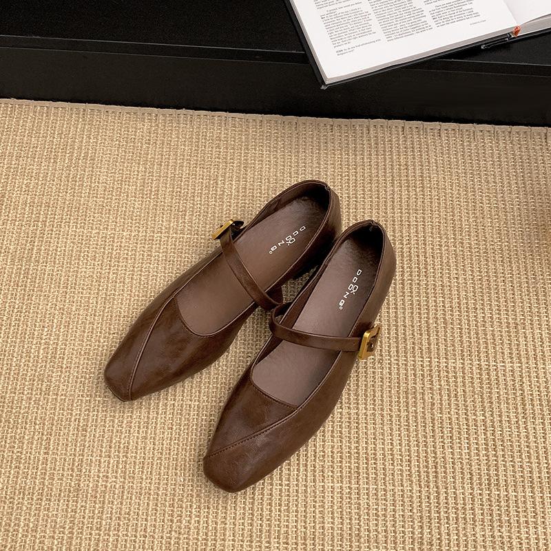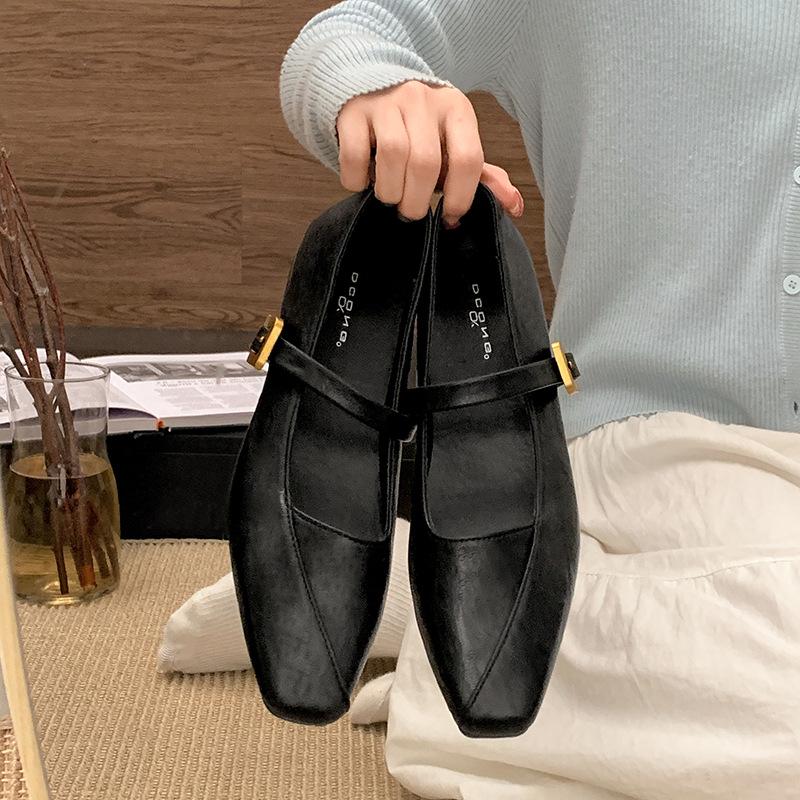 Модный темперамент французские ретро туфли на толстом каблуке женские маленькие кожаные туфли 2025 новые весенне-осенние туфли квадратной формы с юбкой Мэри Джейн одинарные туфли