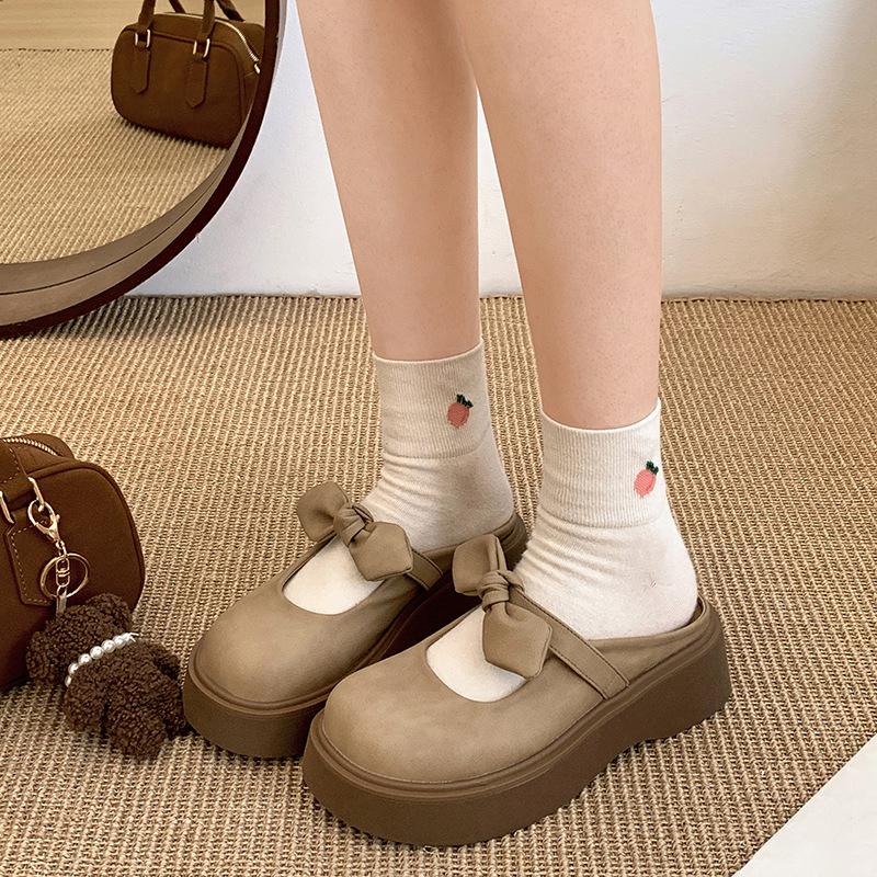 Тапочки-мешки с толстой подошвой и бантом в стиле ретро для женщин, летняя одежда 2025 года, новые полутапочки Мэри Джейн с одной педалью