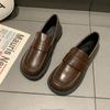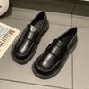 Ретро британский стиль универсальные черные туфли с круглым носком 2024 года на платформе маленькие кожаные туфли женские летние французские мокасины на толстом каблуке