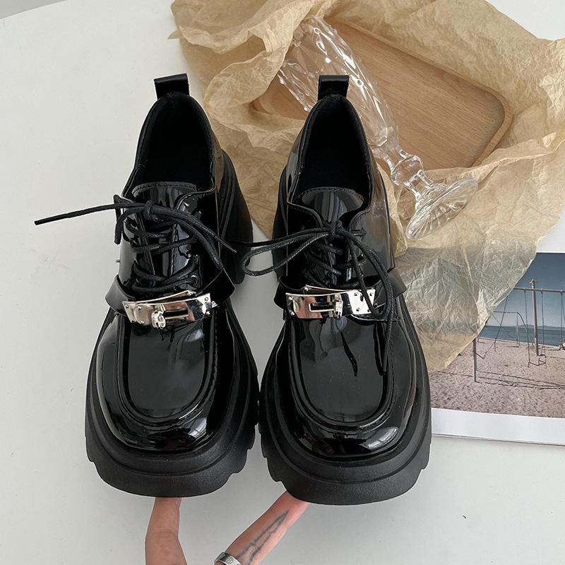Черные туфли-лодочки на толстом каблуке в стиле ретро, женские, кожаные, весна-осень 2025, новые, универсальные, в британском стиле, на шнуровке, туфли Мэри Джейн — купить товар онлайн с бесплатной доставкой по всему миру!
