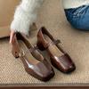 Модные коричневые туфли в стиле ретро с квадратной головкой, женские туфли из кожи, новая весенне-осенняя юбка 2025 года, французские туфли Мэри Джейн