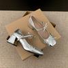 Серебряный темперамент французские ретро туфли на высоком каблуке женские кожаные туфли 2025 года новые весенние туфли Мэри Джейн увеличивающие рост с бантом