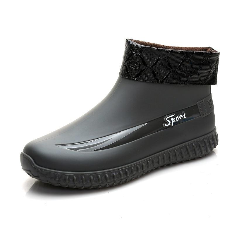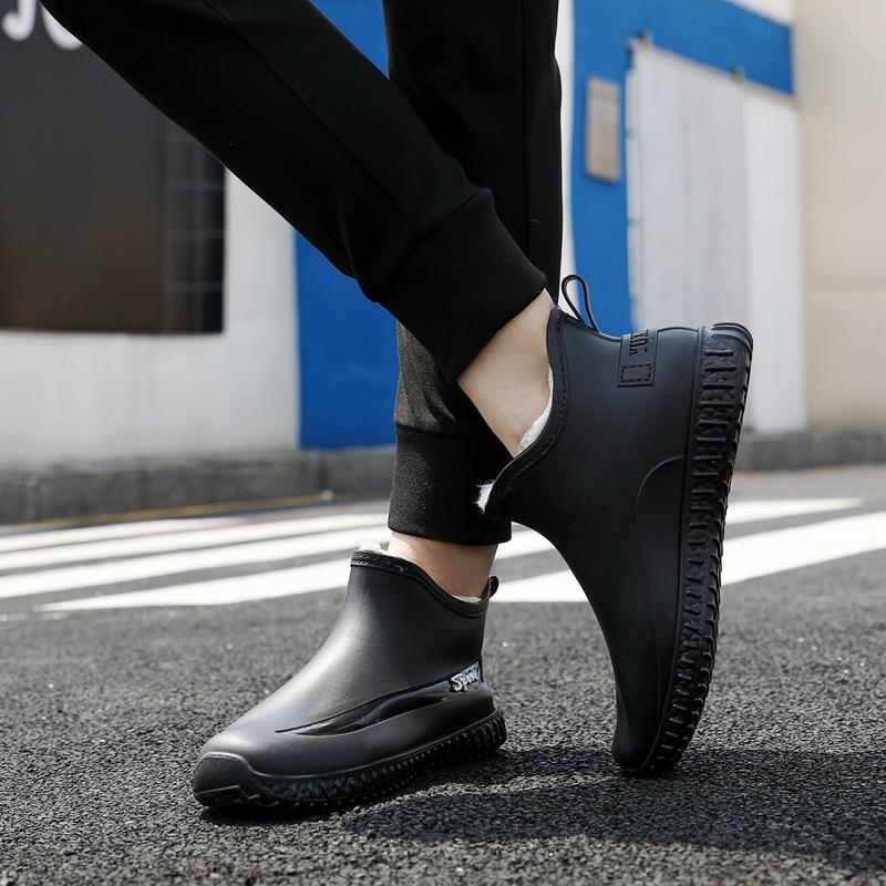 Сапоги мужские короткие флисовые универсальные на плоской подошве с мягкой подошвой короткие сапоги-трубы для дождя водонепроницаемая обувь для кухни на толстой подошве с противоскользящей отделкой