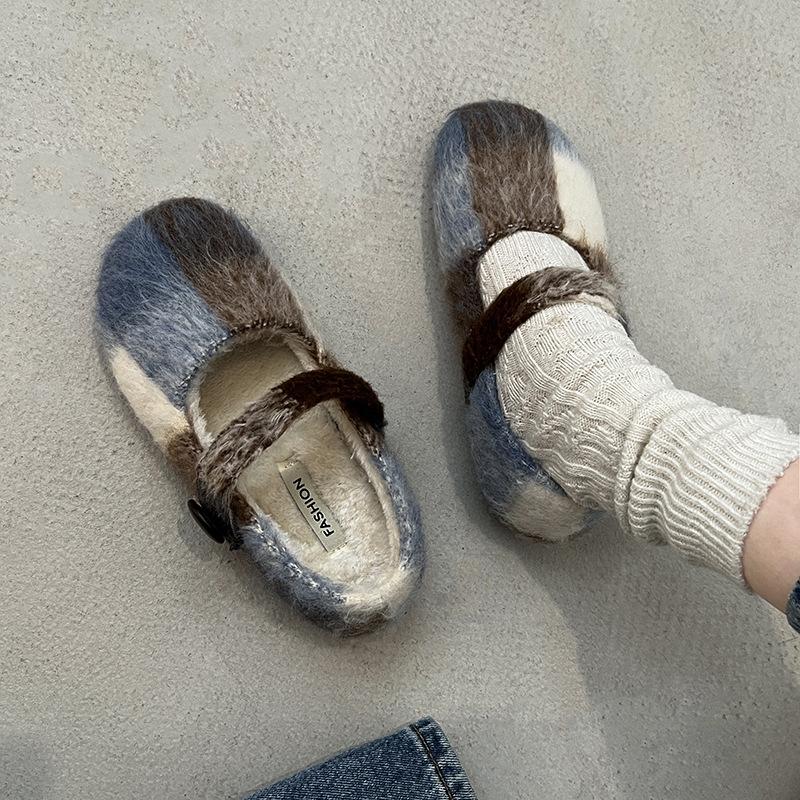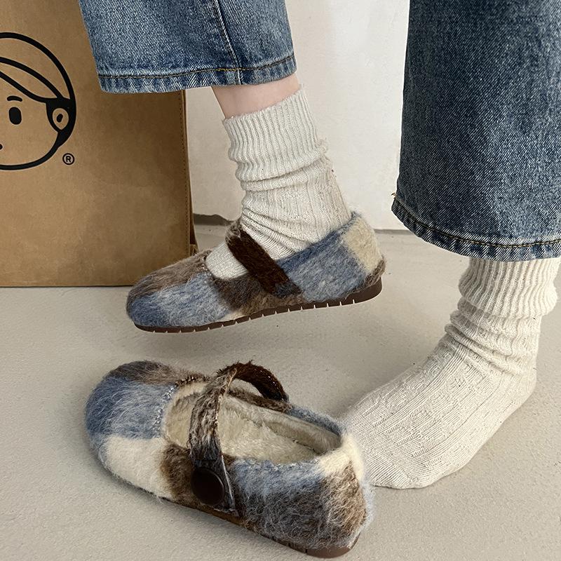 Флисовые туфли Мэри Джейн на плоской подошве для женщин, осень-зима 2025, новые универсальные туфли с небольшим ароматом и мягкой подошвой