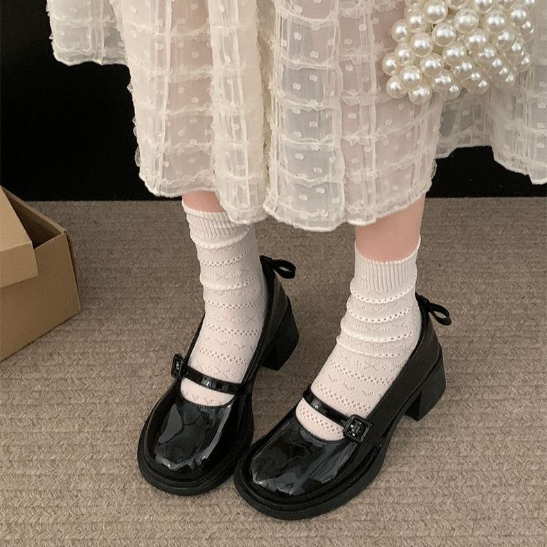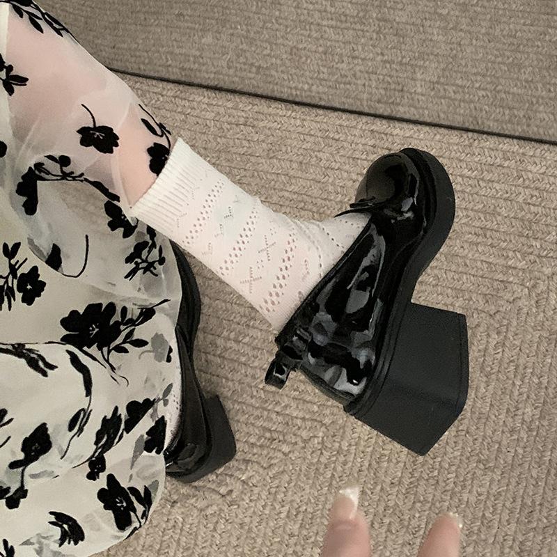 Простые черные туфли на толстом французском каблуке с круглым носком, женские, новые весенне-осенние туфли Мэри Джейн с неглубоким носком