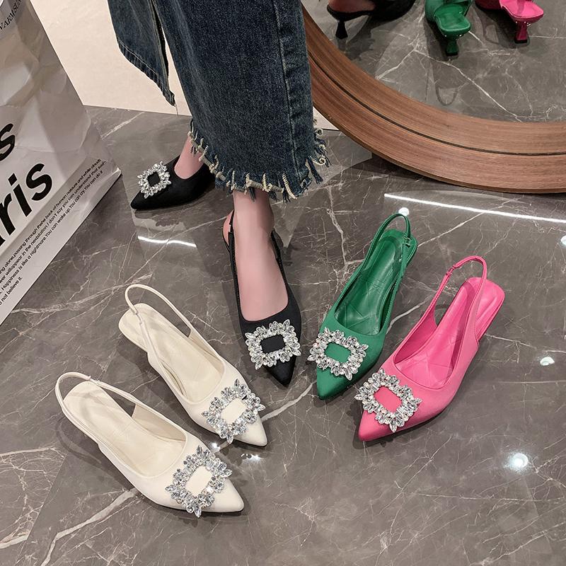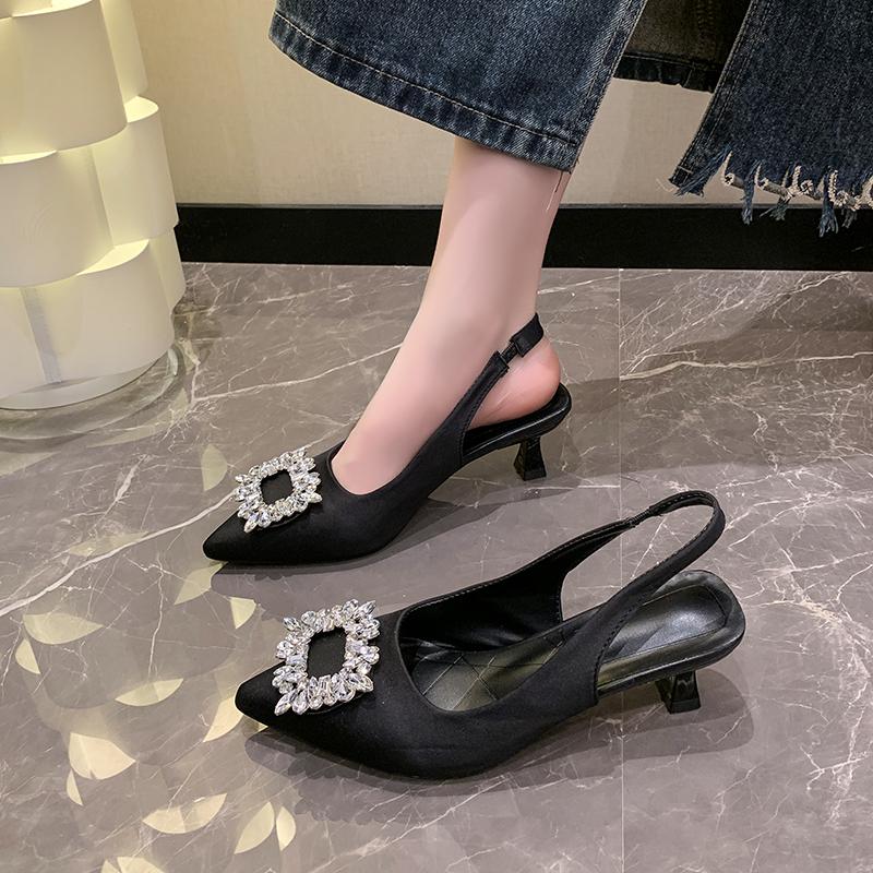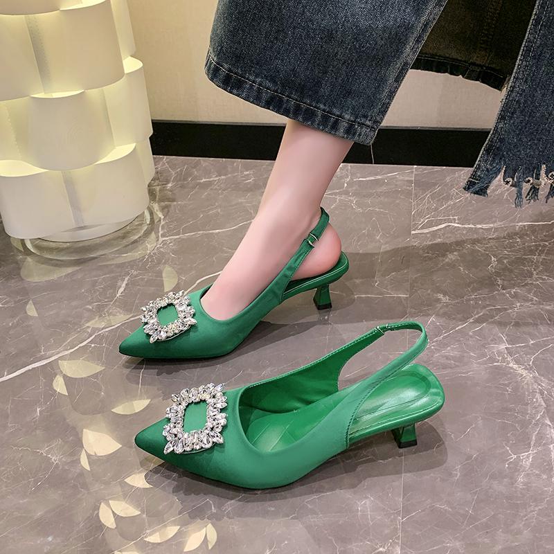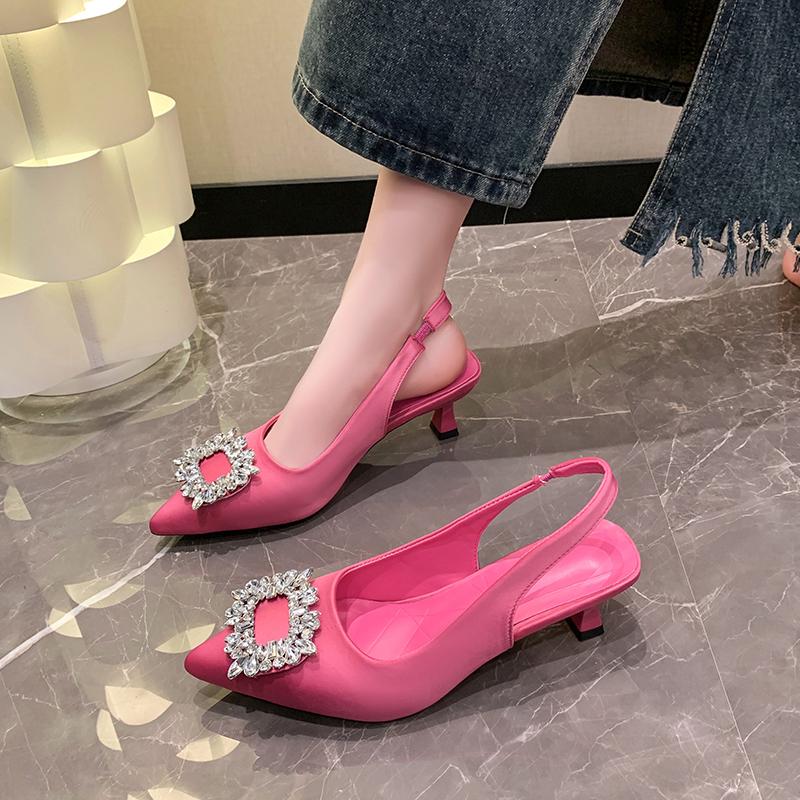 Модные женские босоножки с острым носком, летние сексуальные туфли-лодочки для вечеринок, повседневные туфли на тонком высоком каблуке со стразами и пряжкой на поясе, свадебные босоножки