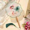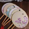 Round Double Sided Embroidery Fan Chinese Style Flower Silk Fan Vintage Hanfu Hand Fan for Guests