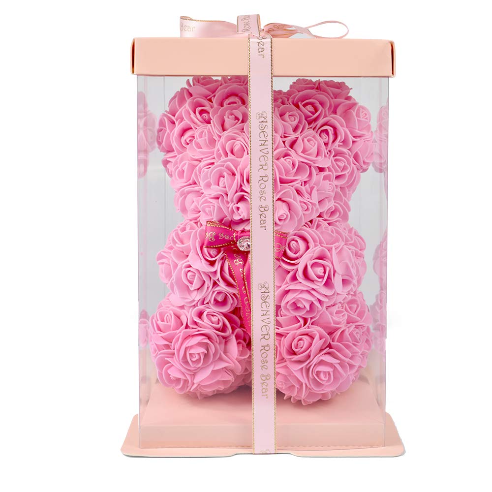 Медведь из роз Enhong, Никогда не Вянет, Мягкая игрушка, Украшение интерьера, День рождения, День святого Валентина, Рождество, Подарок на Новый год (С коробкой (розовый))