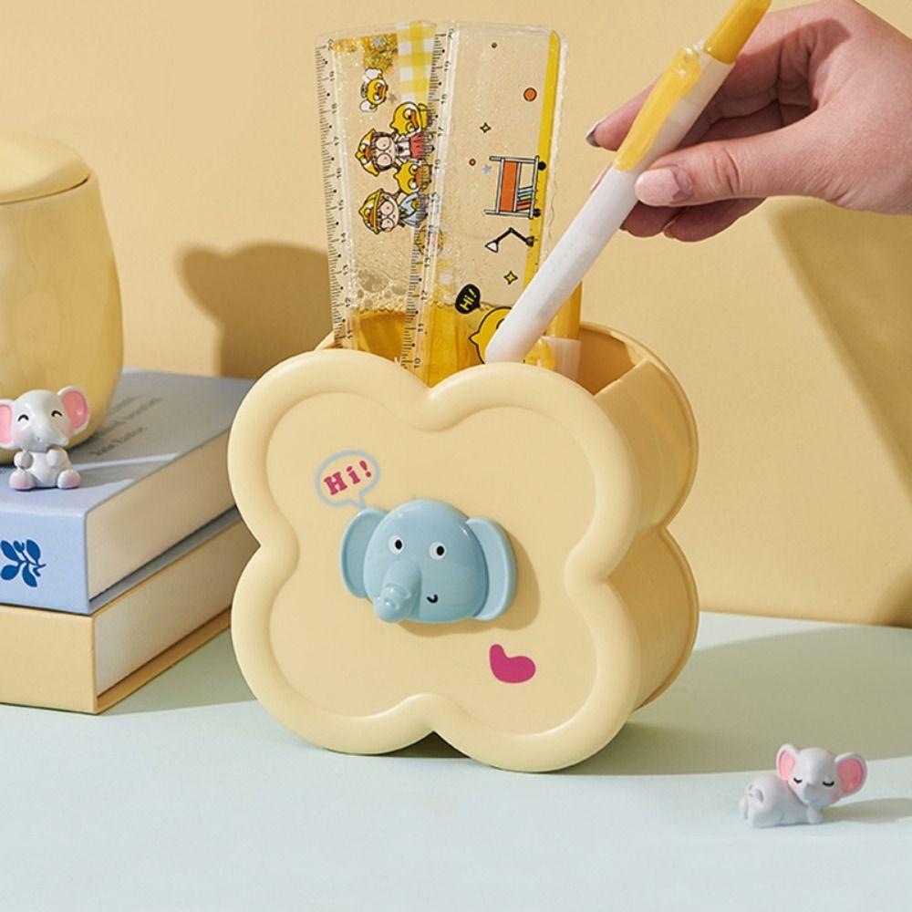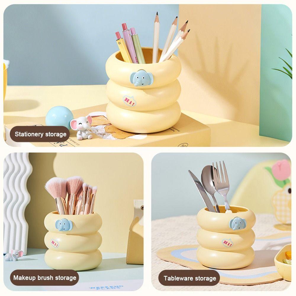 Multifunctional Desk Pen Container Cute Cartoon Plastic Pencil Case Pen Holder Makeup Brush