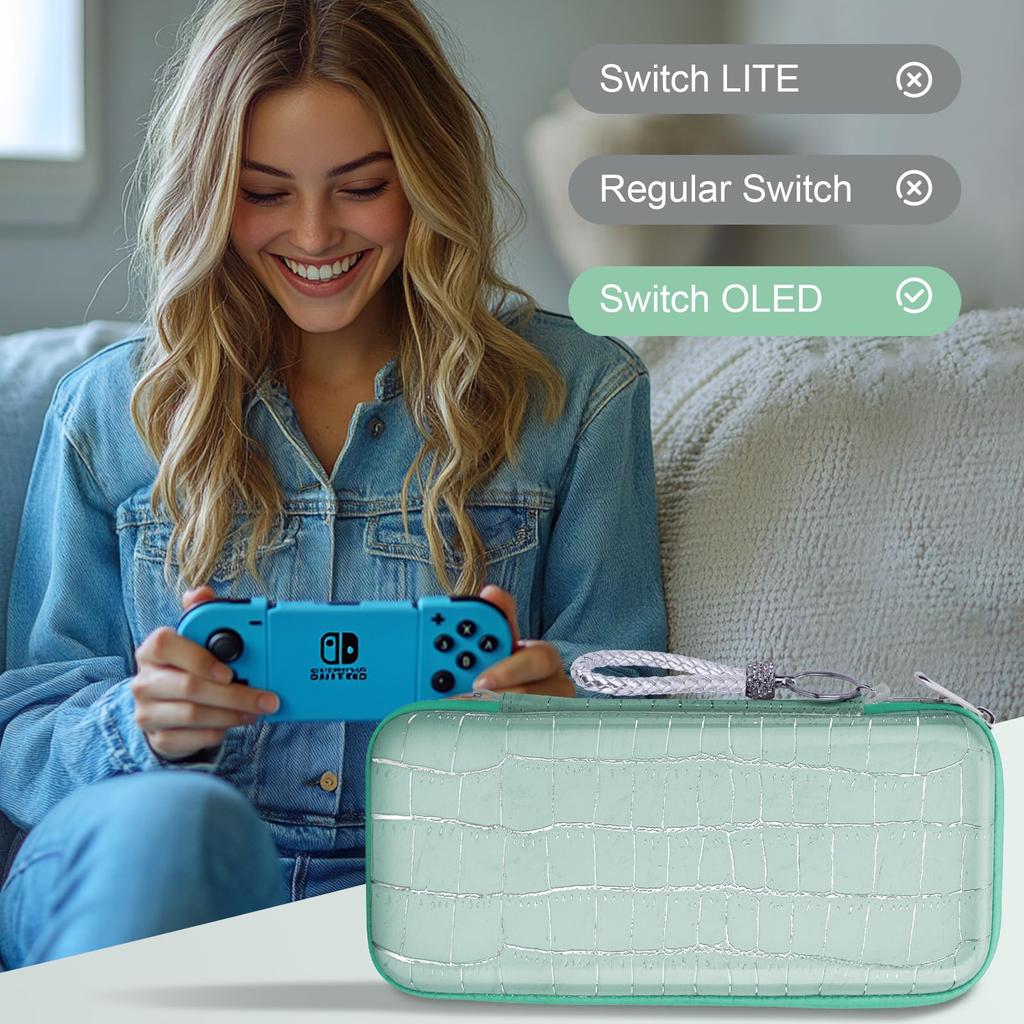 [Стильный внешний вид] Этот чехол Switch разработан в соответствии с рисунком крокодиловой кожи, а защитный чехол подчеркивает роскошную, щедрую и элегантную атмосферу.. Доступно в различных цветах и дизайнах, чтобы соответствовать вашему личному стилю.. Защитите свой Switch не только как защитный чехол, но и как модный аксессуар.