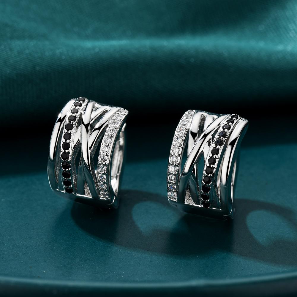 Серьги-кольца с черными и прозрачными цирконами, геометрический дизайн с переплетенными линиями, гипоаллергенные украшения для женщин — купить товар онлайн с бесплатной доставкой до всему миру!