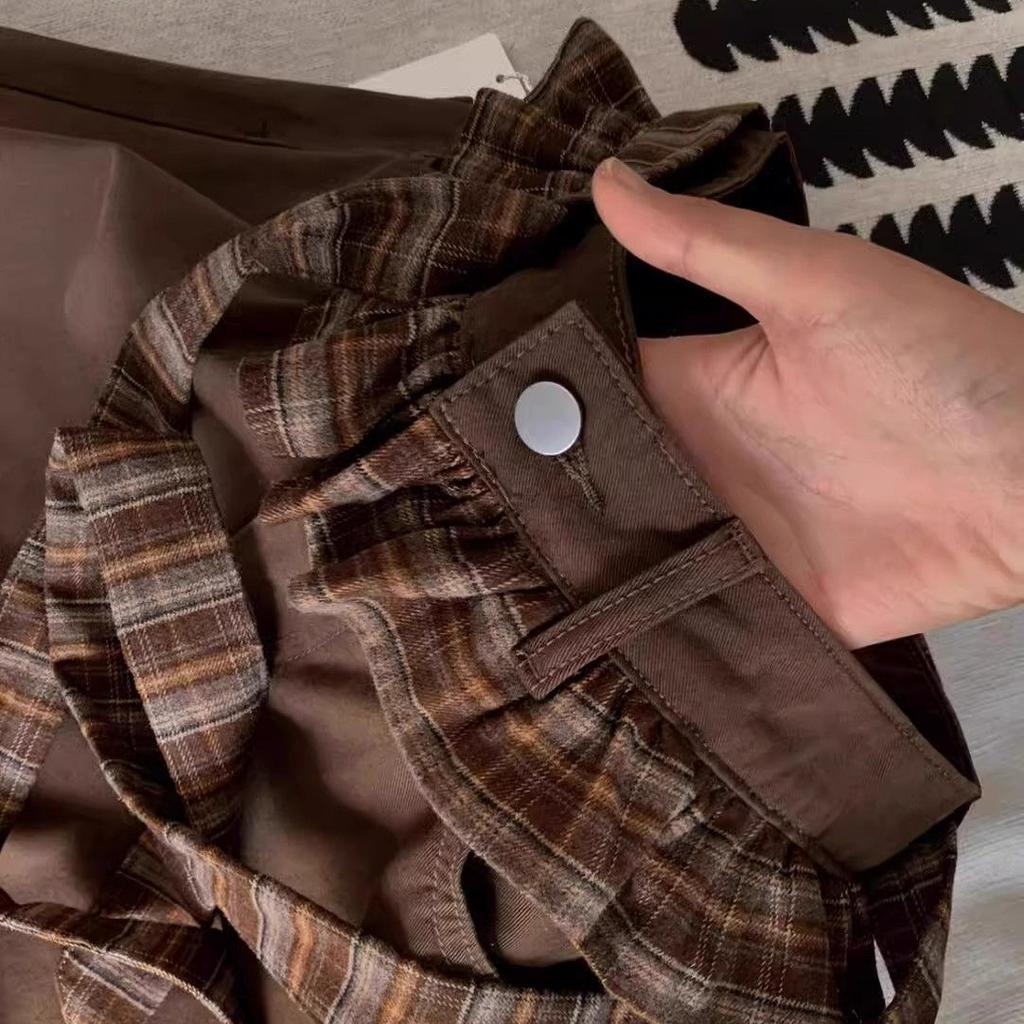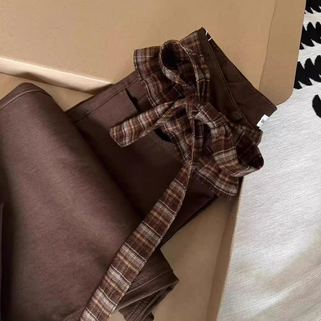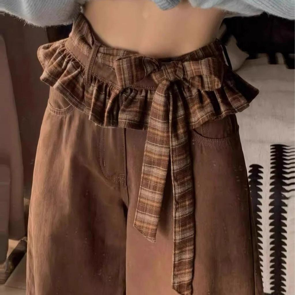 Женские джинсы с двойной талией и ремешком-бабочкой кофейного цвета, весенне-летний дизайн, прямые свободные брюки широкого покроя